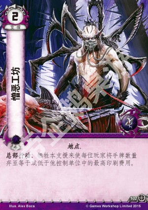 :牺牲本支援来使每位玩家将手牌数量弃至等于或低于他控制单位中的最高印刷费用。