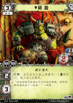 文本中断:当你在本行星上部署另一个兽人单位时,减少其1点费用。